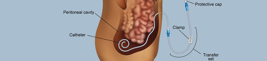 During peritoneal dialysis, a cleansing fluid flows through a tube (catheter) into part of your abdomen. The lining of your abdomen (peritoneum) acts as a filter and removes waste products from your blood. After a set period of time, the fluid with the filtered waste products flows out of your abdomen and is discarded.